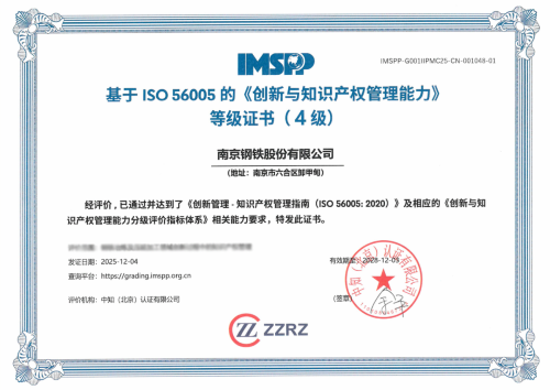 近日,南京钢铁股份有限公司(下称“南钢”)获得taptap点点体育(北京)认证有限公司颁发的基于ISO 56005的《创新与知识产权管理能力》等级证书(4级),这也是江苏省的首张四级证书。